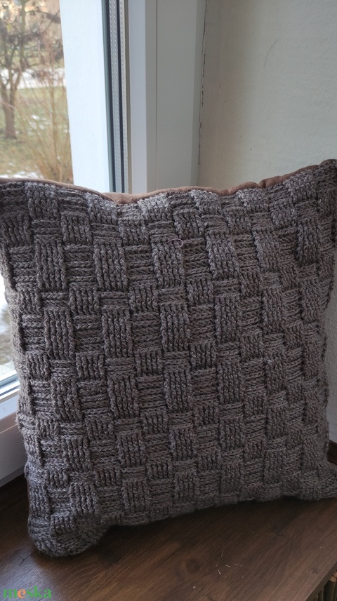 Kézzel horgolt díszpárna huzat barna színben
