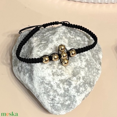 Csomózott makramé állítható méretű karkötő kereszt hematit ásványgyöngyökkel