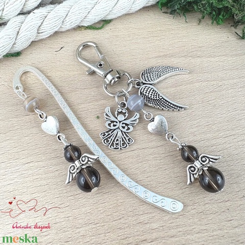 Füstkvarc angyal könyvjelző és kulcstartó szett – ásvány ajándék