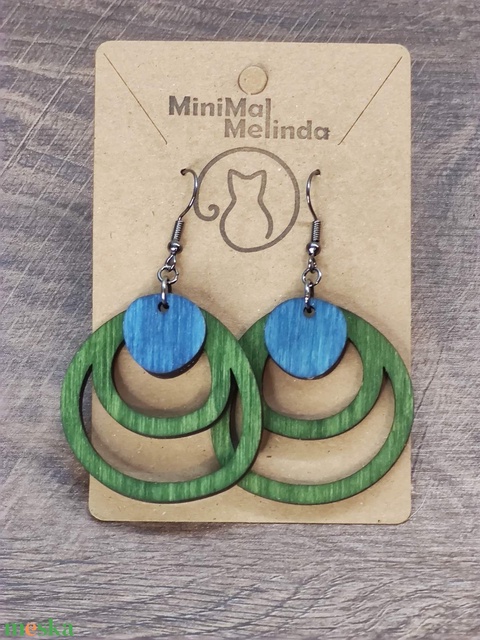 Kétszínű fa fülbevaló - zöld+kék