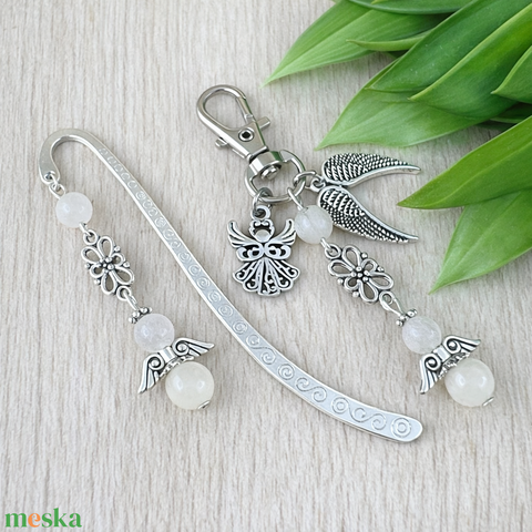 Holdkő angyal könyvjelző és kulcstartó szett – ásvány ajándék