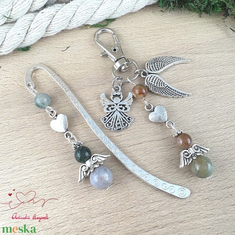 • Könyvjelző, 6 és 8 mm-es indiai achát ásványgyöngyből készült angyalkával – kiegyensúlyozott, természetes kísérő az olvasás pillanataihoz
