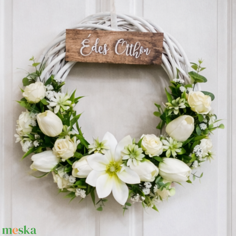Fehér tulipános tavaszi ajtódísz
