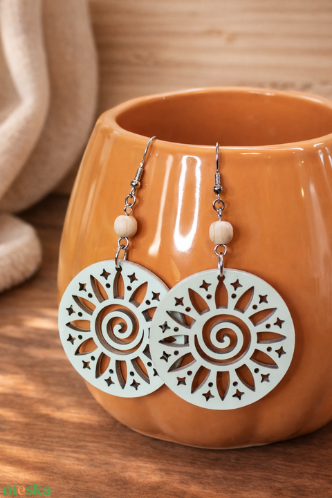 Napvirág – mentazöld fa fülbevaló, közepes
