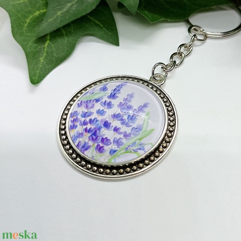 Levendula mintás medálos kulcstartó