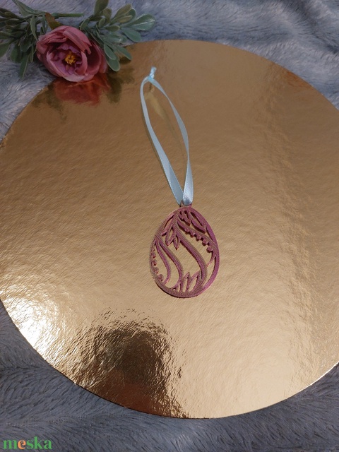 Színjátszó húsvéti tojás dísz – rózsaszín-arany dekoráció szalaggal