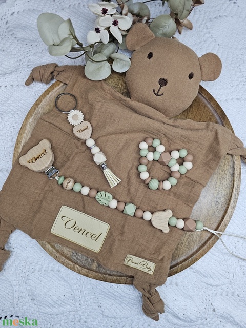 Első ajándékom - Barna macis szundikendő Babaváró ajándék Babaköszöntő ajándékbox