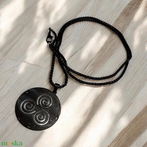 Fekete nemesacél Kelta triszkelész medálos nyalánc ajándékdobozzal 5731457