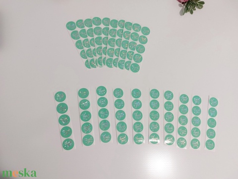 Thank you, Köszönöm színjátszó- mentazöld holografikus matrica csomag, 50 db-os