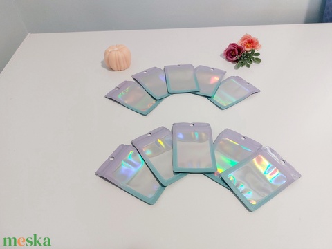 Lila-kék színátmenetes holografikus ajándék tasak, ajándék zacskó, 10 db-os csomag