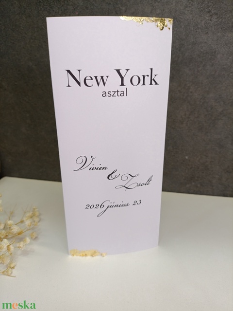 Esküvői menü, asztalszám minimalista aranyfüsttel