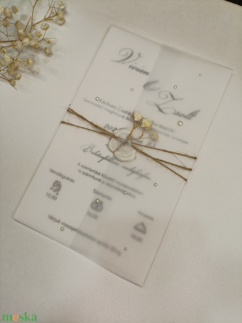 Esküvői meghívó viaszpecséttel gyöngyökkel