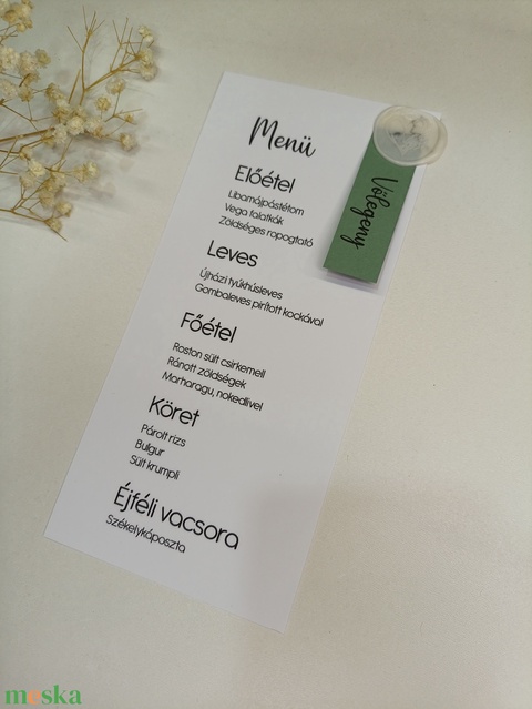 Esküvői menü és ültető kártya viaszpecséttel