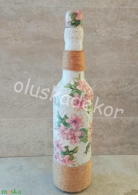 Dekorációs üveg, váza, mozaikos, vintage virágos