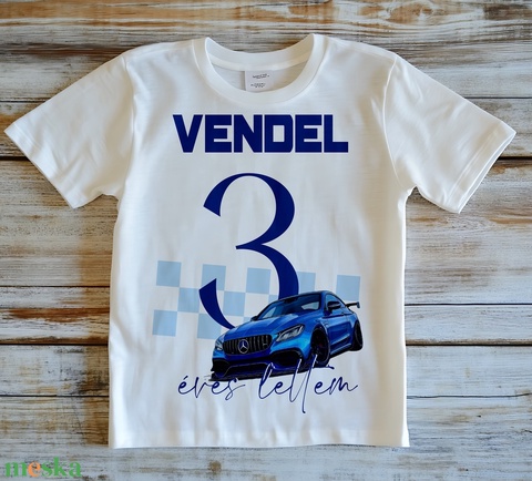 Szülinapi gyermek póló - kisautós grafikával