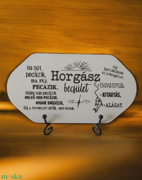 Horgász Becsület Tábla Fém álványal