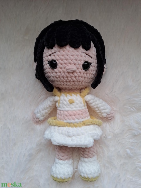 - Anyaga: zsenília fonal, szilikonos tömőanyag, biztonsági szem, pamutfonal