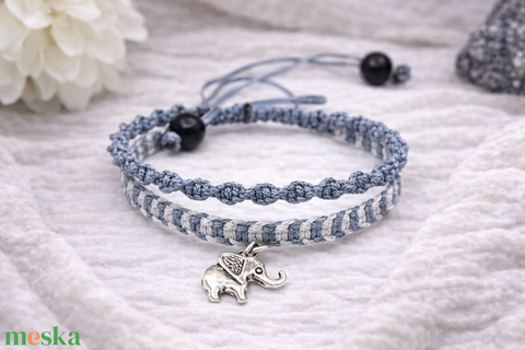 Elefánt dupla soros makramé karkötő