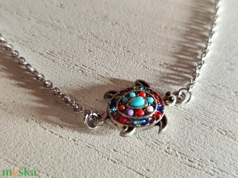 Vékony nemesacél nyaklánc delfinkapoccsal – strasszos teknős medállal!