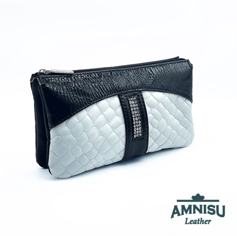 Fekete gyűrt lakk - fehér lakk krokkómintás kristály köves női pénztárca G8007-3013