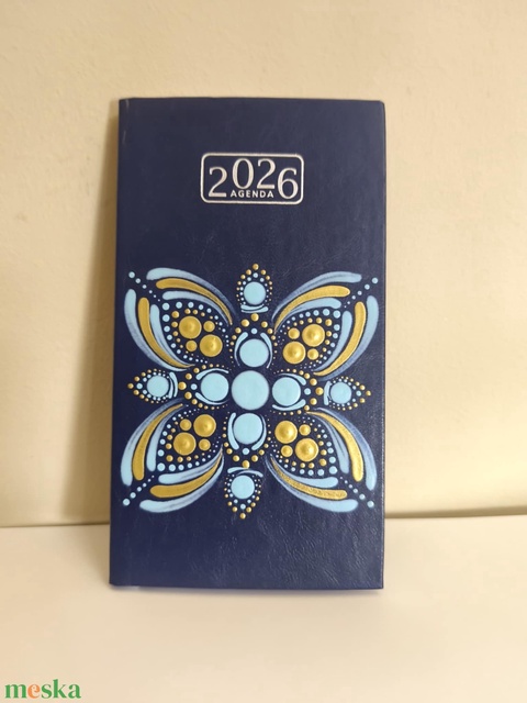 2026-os mandalás zsebnaptár kék-arany (kézzel festve)