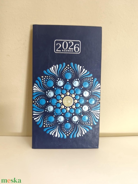 2026-os mandalás zsebnaptár kék alapon kék díszítéssel (kézzel festve)