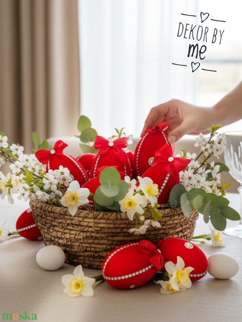 - Anyaga: hungarocell tojás, bársonyanyag, selyemszalag, strasszkövek