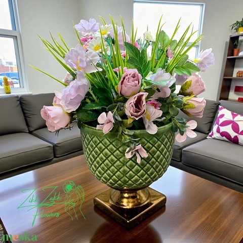 Zöld kaspós tavaszi kompozíció