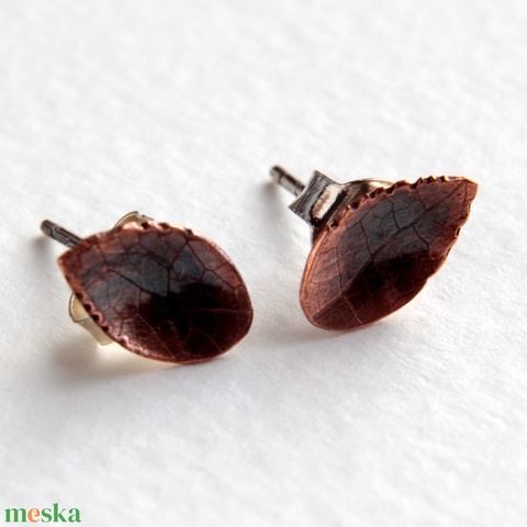 Rézike bedugó vörösréz levél fülbevaló ezüst szerelékkel