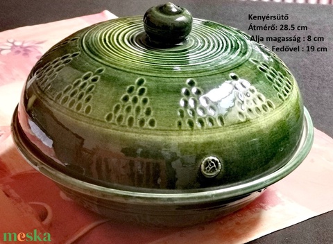 Zöld bézs kenyérsütő karcolt díszítéssel