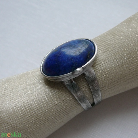 A gyűrű Tiffany technikával készült lápisz lazuli és ólommentes, ezüsttartalmú ón felhasználásával. A díszítés szintén saját készítésű, nem tartalmaz gyári elemeket. A fémrészt lekezeltem antioxidánssal és lelakoztam, hogy sokáig szép maradjon.