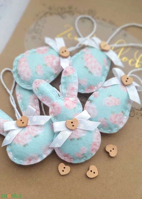 Húsvéti barkadíszek, rózsás nyuszik és tojás, puha filcdíszek