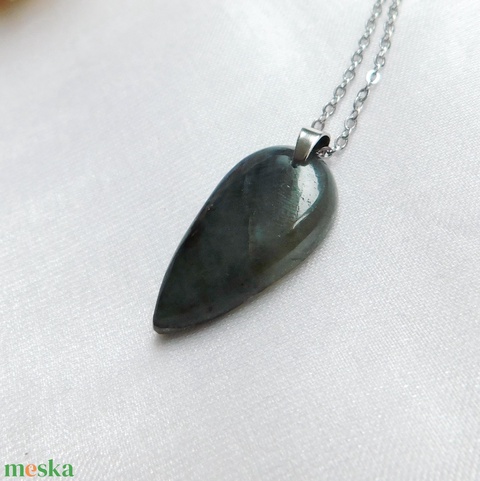Orvosi acél szerelékre akasztottam ezt a különlegesen szép labradorit medált.