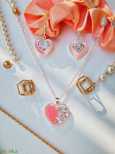 Pink ezüst szív nyaklànc szett