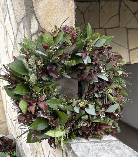 Emléktáblára szánt koszorú élő növényanyagból kötve