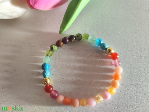 Tavaszi Színharmónia Ásványkarkötő – Rugalmas, 16 cm, 6 mm-es gyöngyök!