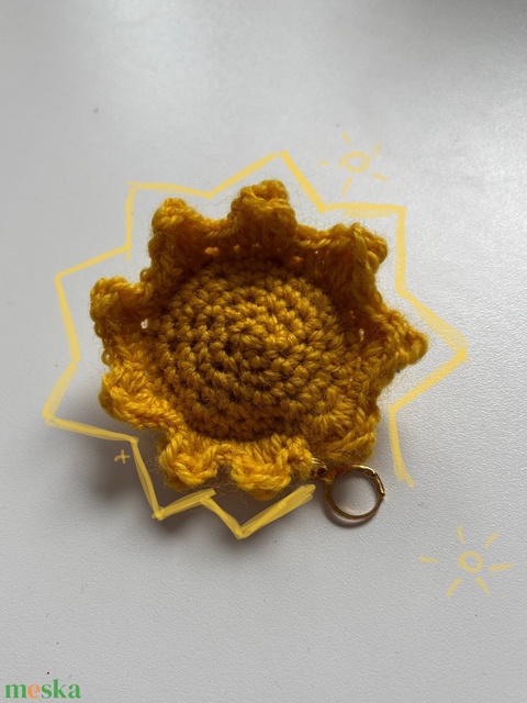 Gyapjúfonalból horgolt vidám sárga napocskás kulcstartó vagy táskadísz🌼🌞