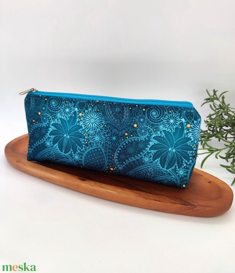 Tolltartó / neszeszer türkiz zöld virág minta