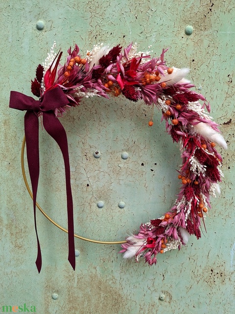 Szárazvirágos ajtódísz, falidísz