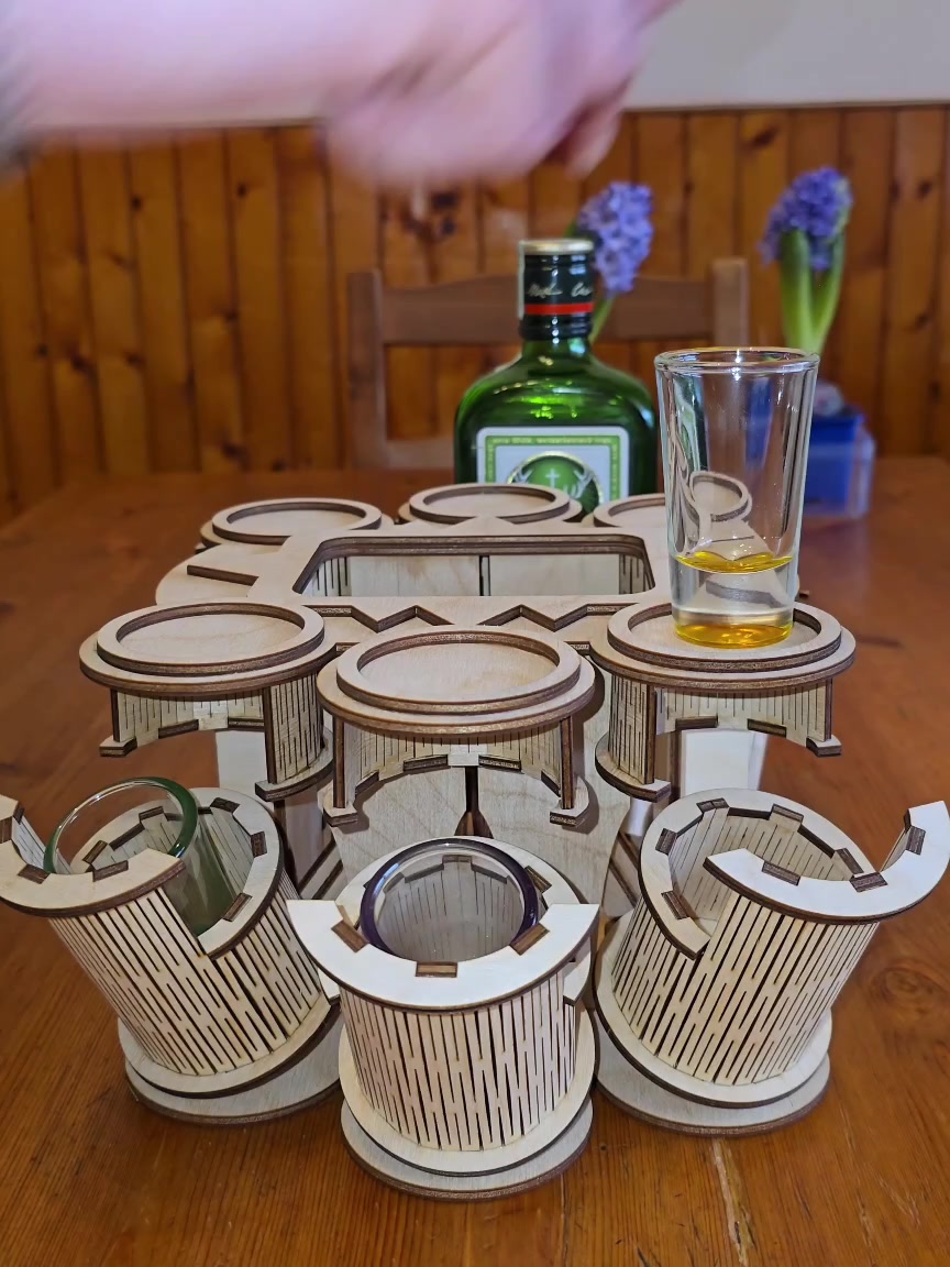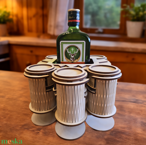 Fa italtartó felnyíló pohártartókkal – középen palacktartóval