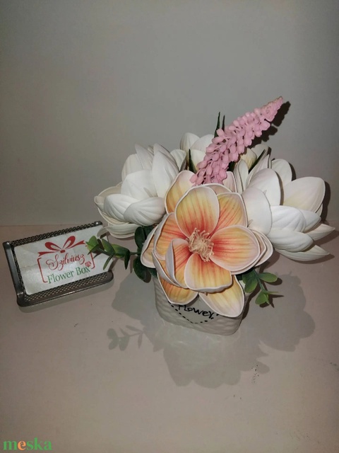 - Anyag/Összetevő kerámia kaspó, élethű virág, moha