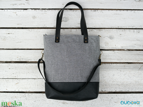 Variálható valódi bőr pántos szürke-fekete szövettáska
