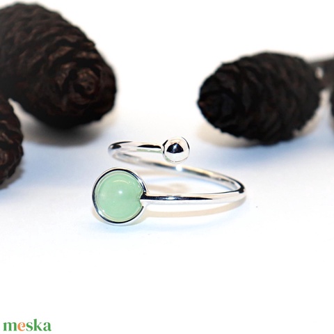 Jáde köves, női ezüst gyűrű, 56-os méret, állítható (EGY.292)