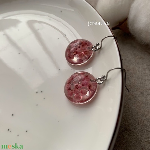Rózsaszín virágos epoxy gyanta fülbevaló