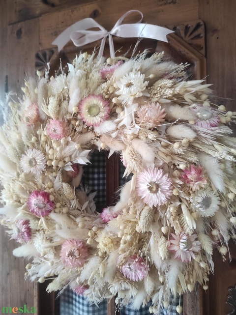 Szárazvirág koszorú,ajtódísz(pasztell)