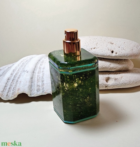 Luxus parfümtartó izlandi zuzmóval, arany szinű pupás adagolóval