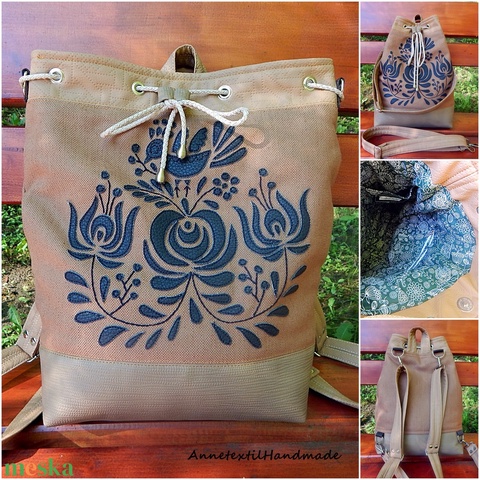 Matyó madaras többfunkciós hátizsák/oldaltáska, barna