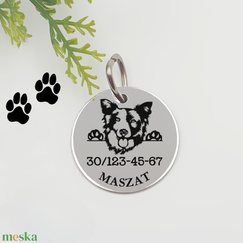 Border collier kutyabiléta saját kutyád nevével, telefonszámmal