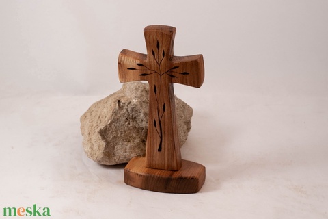 Mintás fakereszt talpas, asztali kereszt