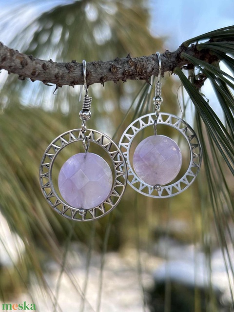 Az ametiszt korongok 15 mm-esek, a fülbevaló átmérője 25 mm.